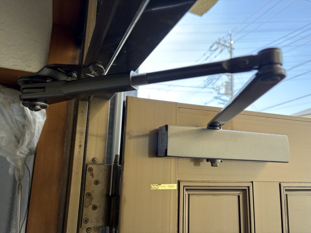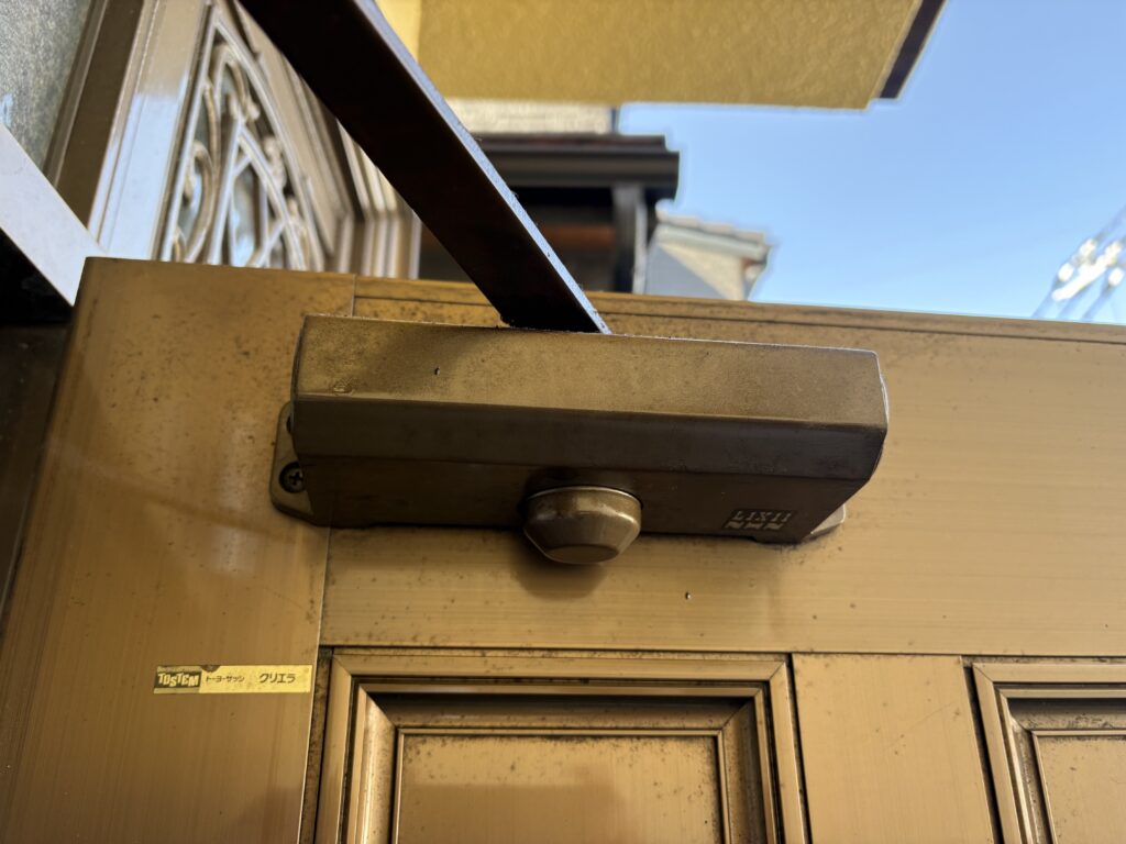先日、長年お住まいになっているおうちの玄関ドアについているドアクローザーの調子が悪いとのことでお伺いさせていただきました。見るとドアクローザーから油漏れがあり、新しいものに交換することとなりました。