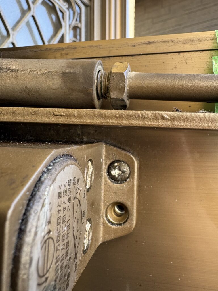 新品のドアクローザーを入手しいざ交換!と作業を始めましたが、長年頑張ってきただけあってドアクローザーと玄関ドアを固定していたネジが固着していてドライバーで回すことができず、ネジ山をつぶしてしまいました・・・。固着ネジを外す道具を急遽近くのホームセンターで入手し作業再開するも全部のネジを外すのに時間がかかり・・・。焦る私をお客様は優しく「古いから外すの大変でしょ?頑張って!」と励ましてくださいました。作業終了予定時間を大幅に過ぎて無事設置が完了し、動作確認をしていただくとお客さは大変喜んでくださいました!